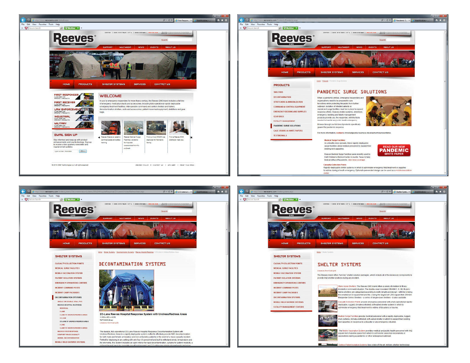 The images below feature digitally composited product and operational scenes, placing Reeves EMS equipment into realistic emergency response and disaster management scenarios. This approach provided visual context for a range of agencies and organizations without costly on-location shoots.
