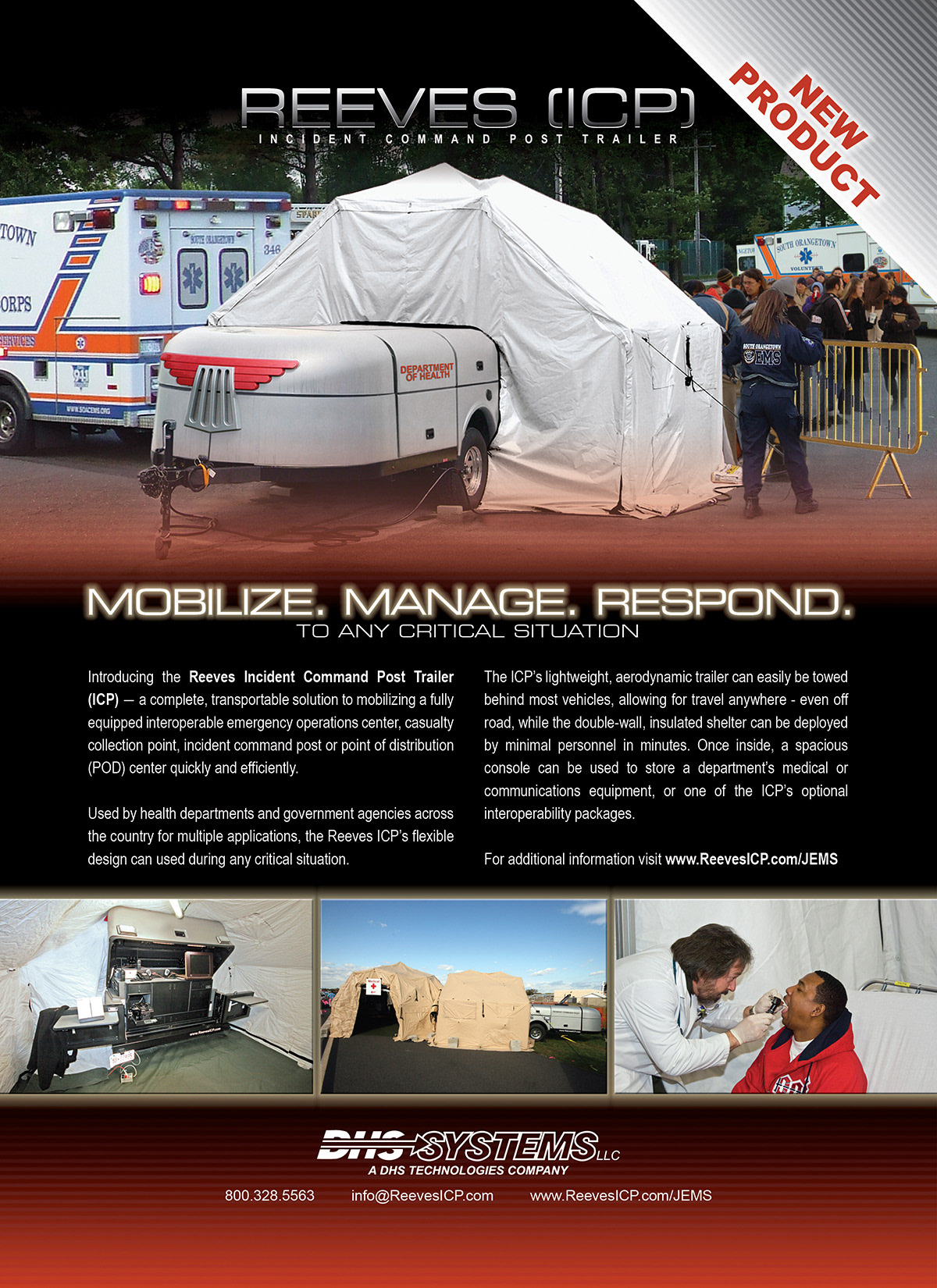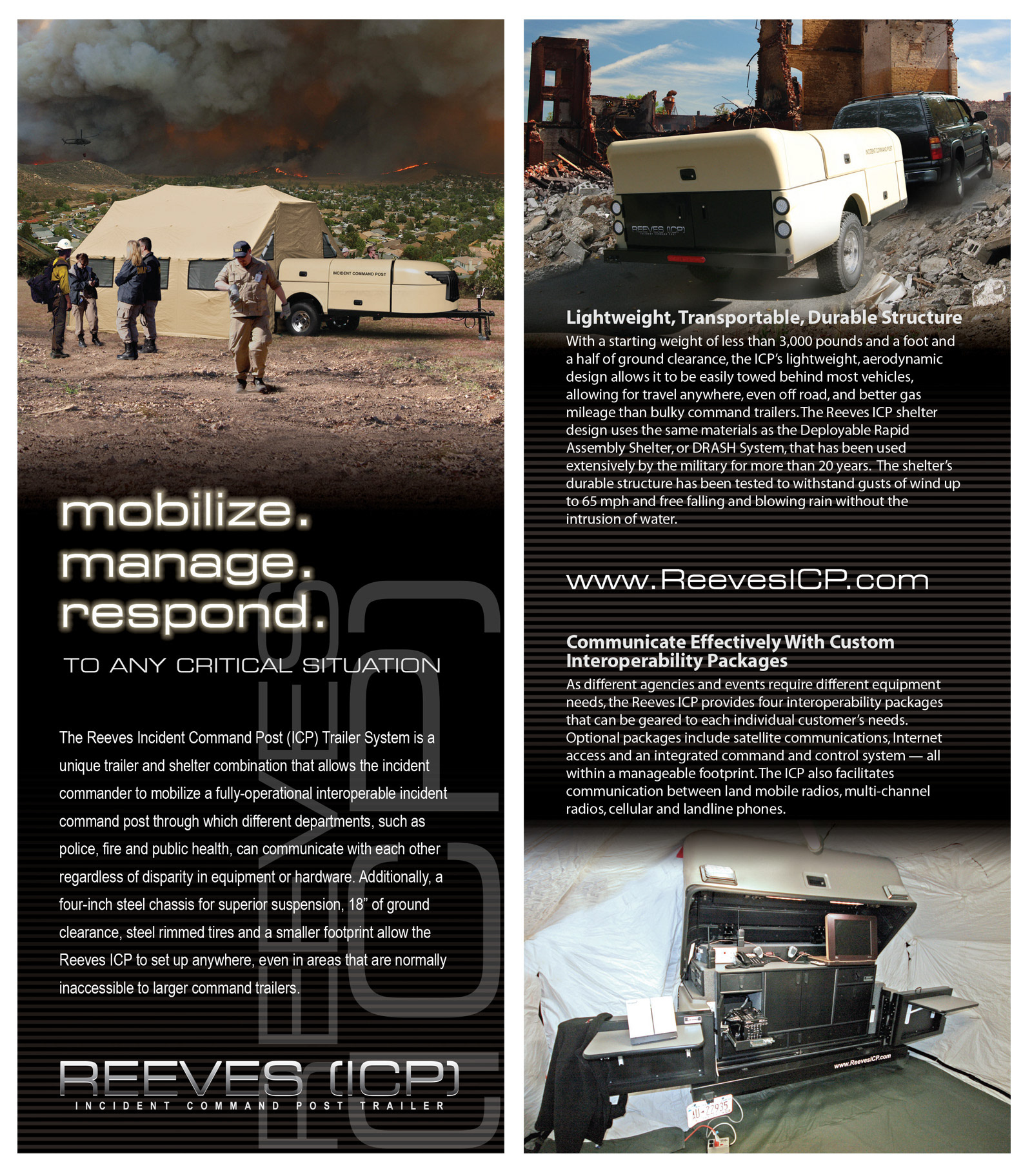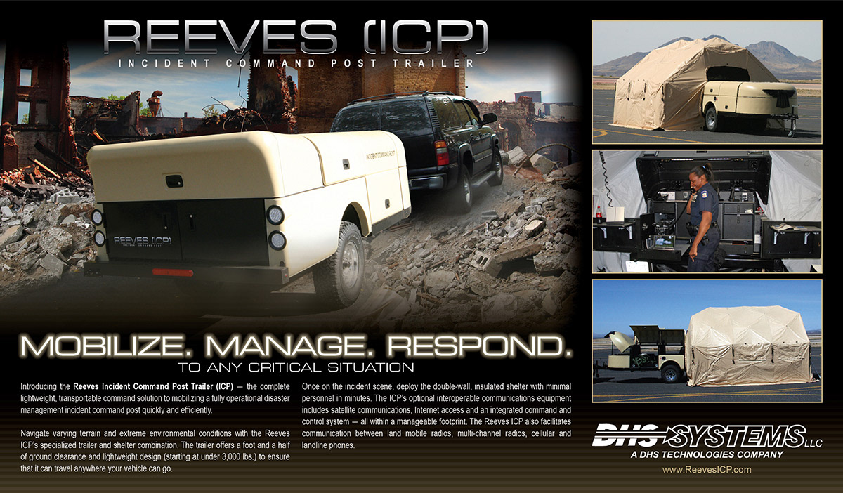 The advertisements below were developed to promote the Reeves ICP mobile incident command system to law enforcement, fire, EMS, and emergency management audiences across industry publications.