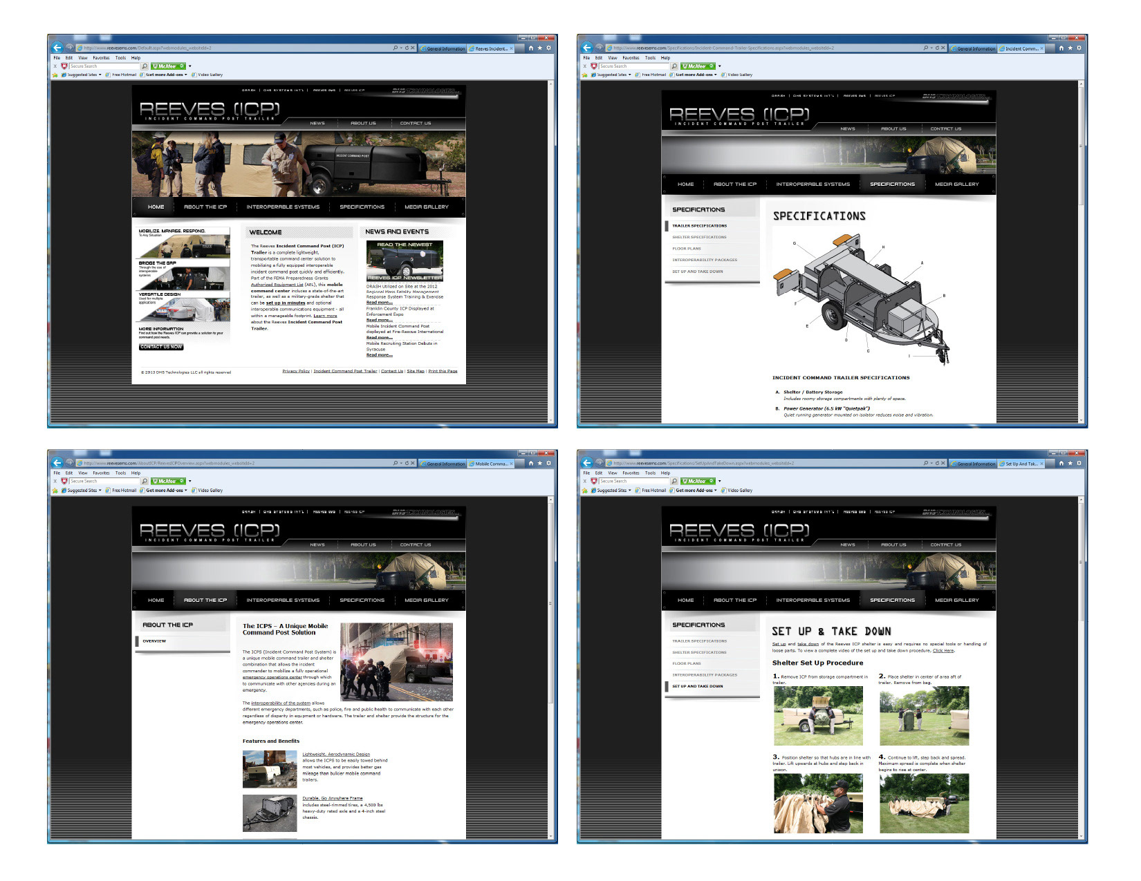 The screens below highlight the Reeves ICP website, designed to present technical information clearly while supporting credibility, usability, and informed decision-making for public safety professionals.
